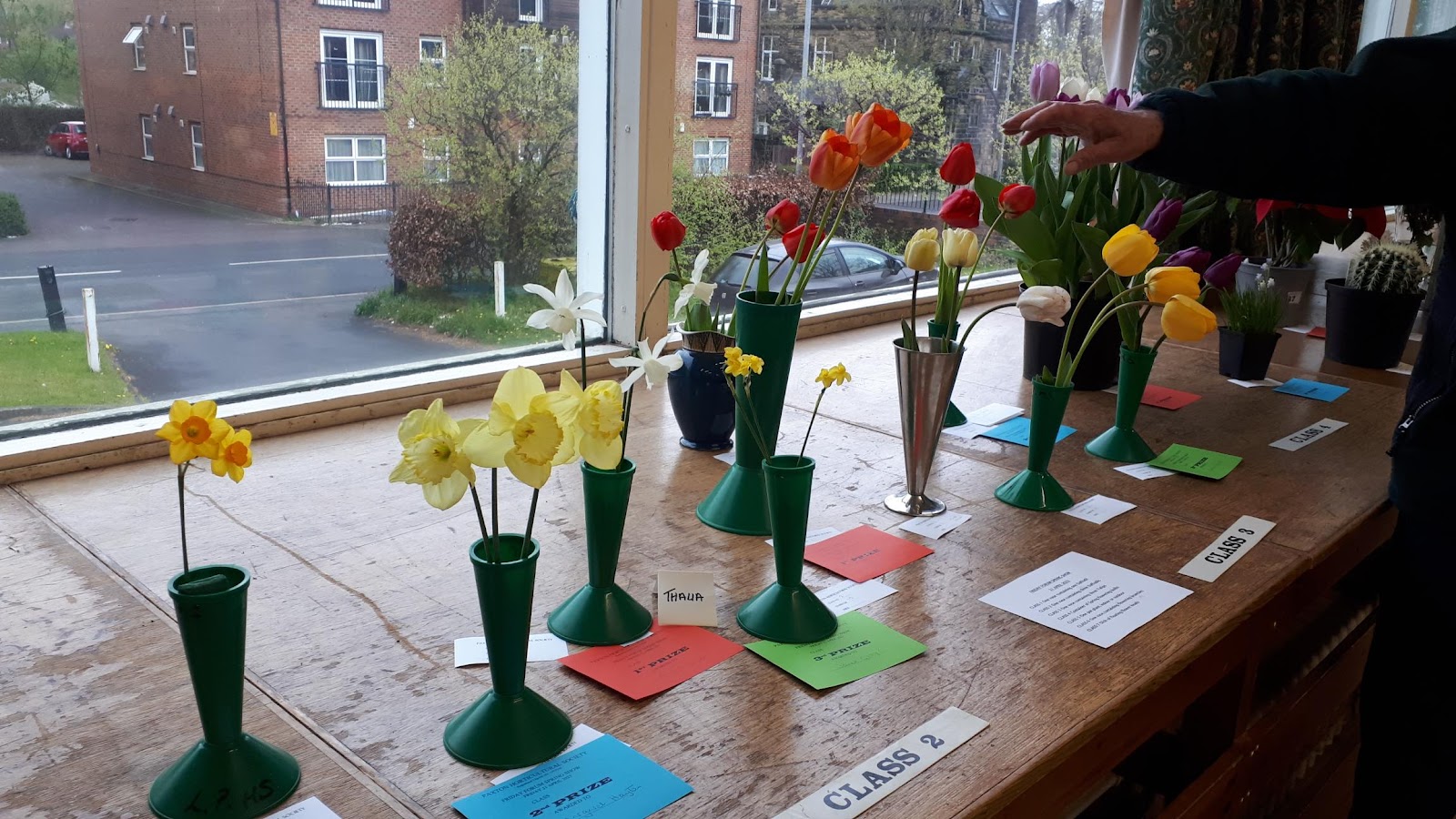 There were 27 entries for our Spring show, despite a lower than usual attendance. Forum member Eric kindly judged the entries and his explanation of how he assessed the various categories was much appreciated.Class 1: One vase containing one Daffodil, 1st place Christine